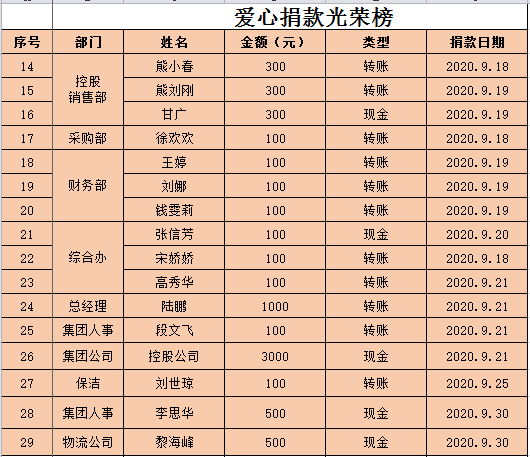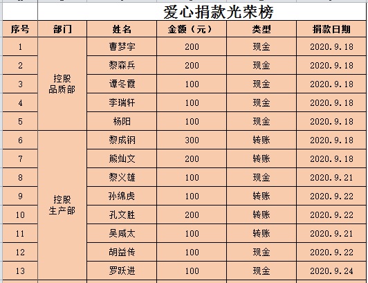 2020年7月20-28日安徽合肥廬江縣受當地持續強降雨影響,愛德森堡集團下屬子控股和物流公司的混凝土打料員楊娟(女)、銷售經理孔杰、A2半掛車駕駛員徐經伍等3名員工家中房屋遭受不同程度洪災。一經聞訊受災,愛德森堡眾人內心倍感揪心,故集團行政人事部于2020年8月發起“愛心捐款”倡議書,動員集團員工積極捐款獻愛心。