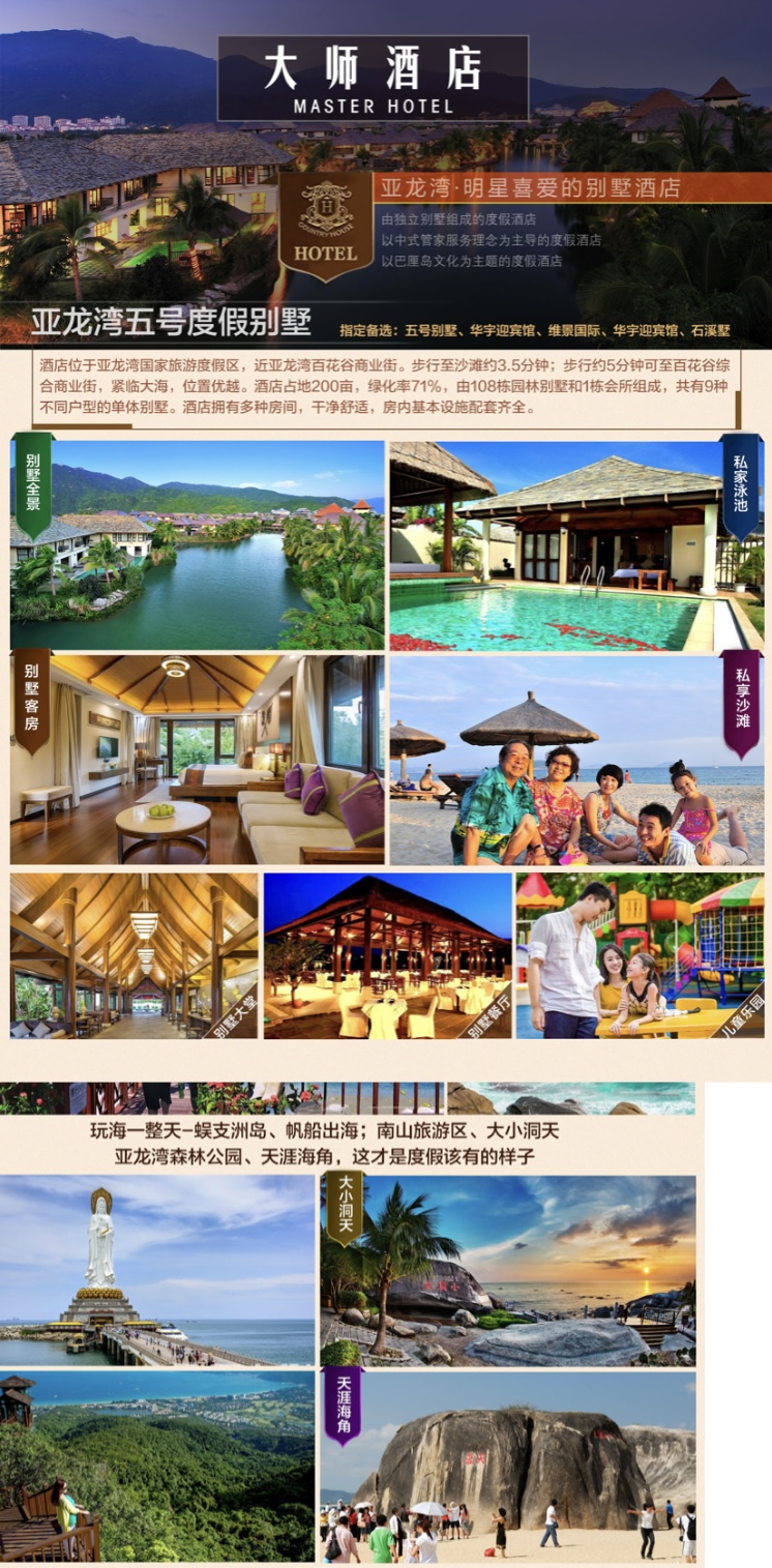 2月16日上午六位優秀員工參加完優秀員工頒獎典禮后,下午3:00乘坐集團公司的商務車到達新橋機場。隨后乘機前往三亞,抵達“國際旅游島”后,導游跟隨專車前來接六位員工前往酒店,沿途欣賞到鹿城三亞市迷人的熱帶景色。導游親自安排六位優秀員工入住度假別墅酒店。這里宜人的氣候、清新的空氣、和煦的陽光,瞬間褪去他們一天的疲憊。