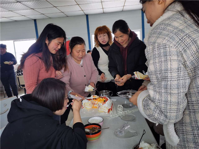 3月8日上午控股公司買了一個大蛋糕給全體女員工一起分享,每個人臉上都洋溢著幸福的微笑。