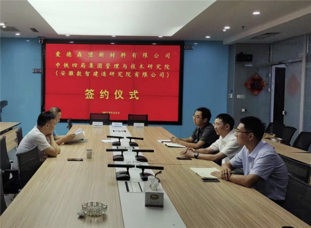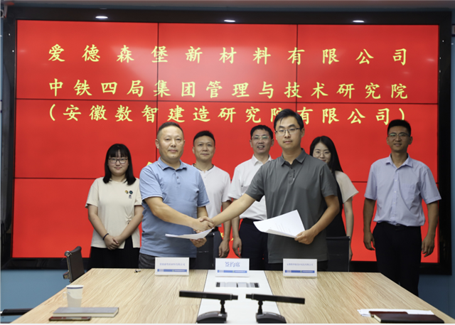 2022年9月5日,愛德森堡集團與中鐵四局集團管理與技術研究院,就愛德森堡集團旗下兩家新材料公司的數智化園區建設,達成500萬戰略合作協議。中鐵四局集團管理與技術研究院院長耿天寶和愛德森堡黃梅新材料有限公司總經理吳虎分別代表雙方簽約。