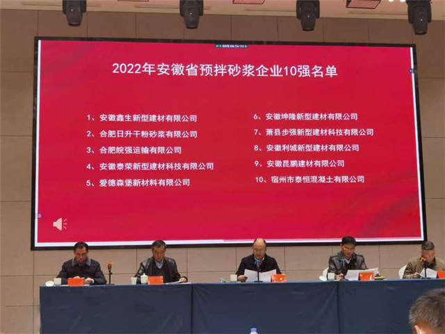 2022年11月30日,安徽省經濟和信息化廳舉行了關于2022年安徽省預拌混凝土企業20強和預拌砂漿10強的授牌儀式,愛德森堡新材料有限公司市場事業部總裁陸鵬應邀參加,我司賡續榮獲“2022年安徽省預拌砂漿十強企業”。