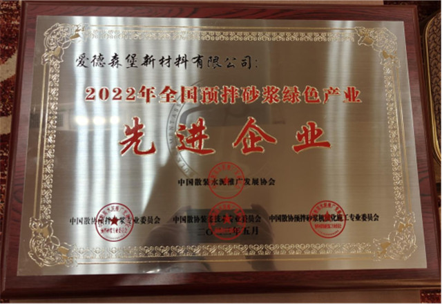 5月23至25日,由中國散裝水泥推廣發展協會主辦的“2023全國散裝水泥綠色產業創新發展(西安)論壇”在陜西省西安市召開。本次大會以“落實‘雙碳’戰略,加快綠色發展”為主題,參加此次會議的代表來自全國各地散裝水泥辦公室、散裝水泥協會、預拌砂漿協會負責人和全國建材、裝備骨干企業,計500余人。愛德森堡受邀參加本次大會并連獲“2022年全國預拌砂漿綠色產業先進企業”、“2022年全國預拌混凝土綠色產業先進企業”兩稱號。