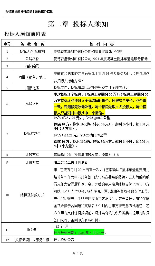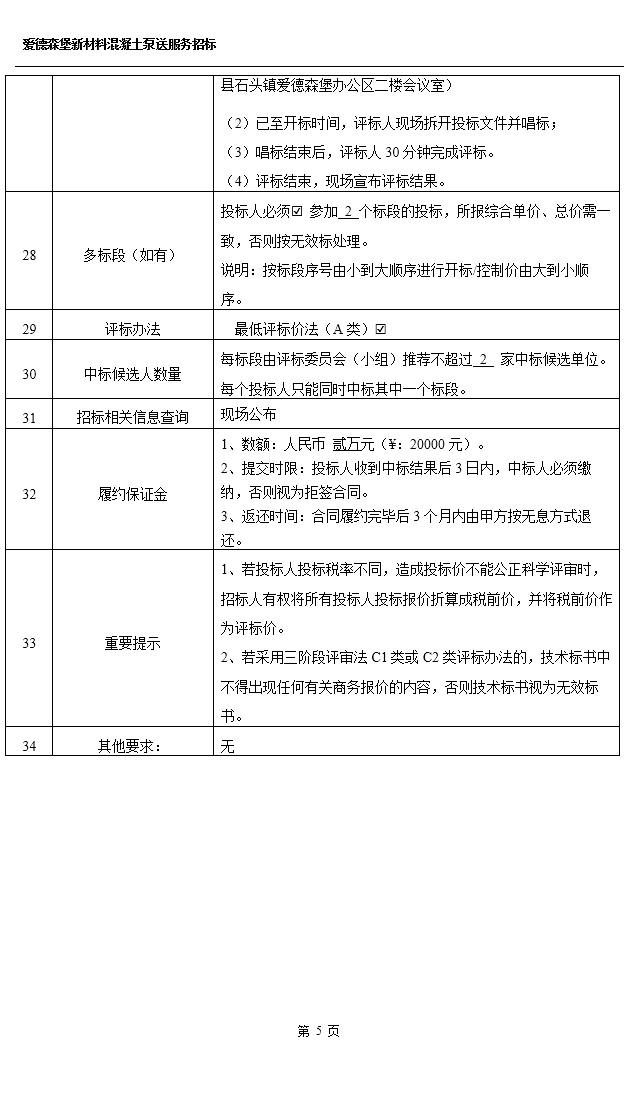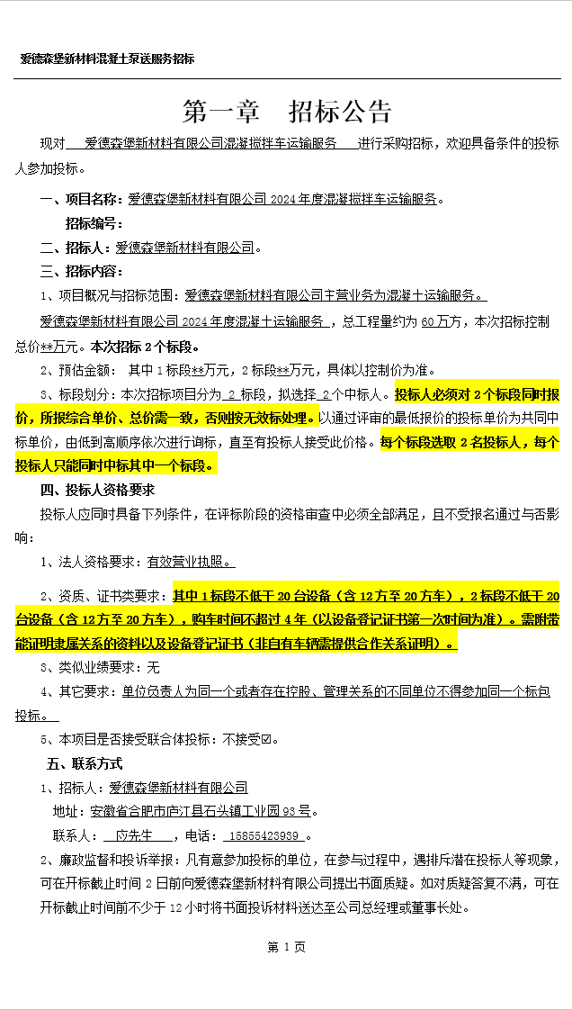 > 愛德森堡新材料混凝土泵送服務(wù)招標