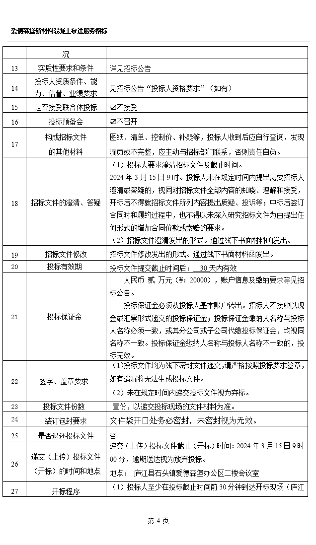 愛德森堡新材料混凝土泵送服務(wù)招標